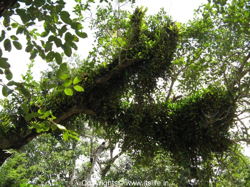 The branches of trees around the ashrama and the temple are weighed down by Orchids. I could recognize at least 5 varieties on the same tree!