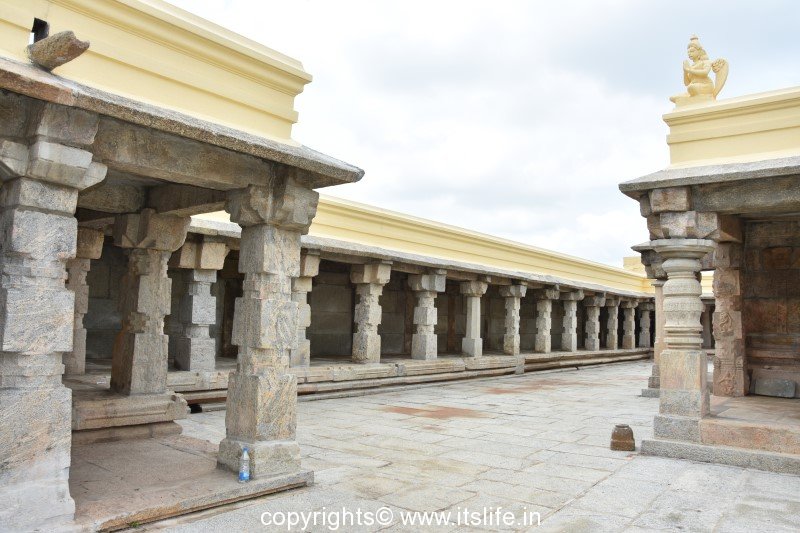 The main door is from the Vijayanagara dynasty and this has a gopuram (tower). As you enter the main door there is a Garuda Sthamba (flag pillar) and the main hall. The gopuram and the garuda sthamba were not completed when we had visited.