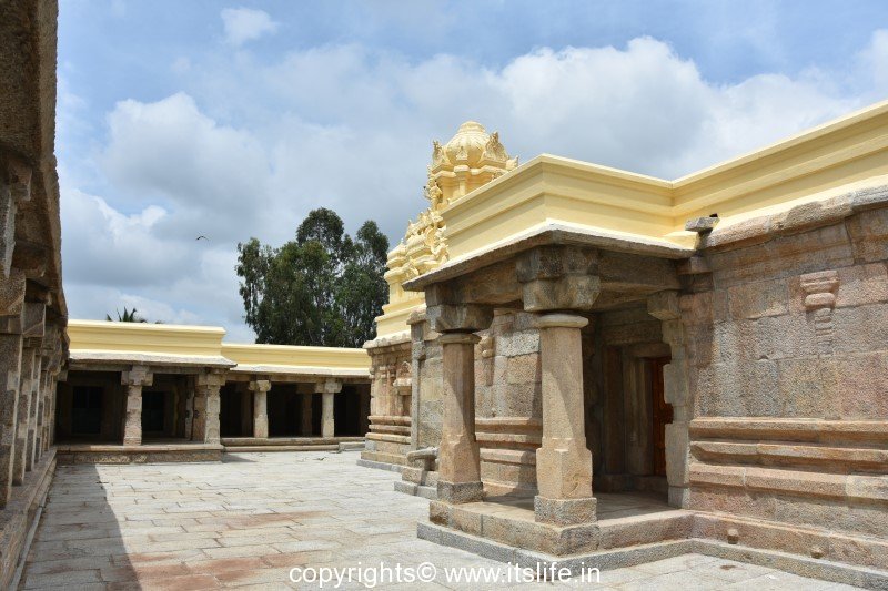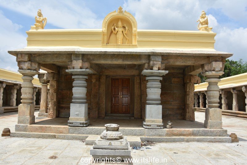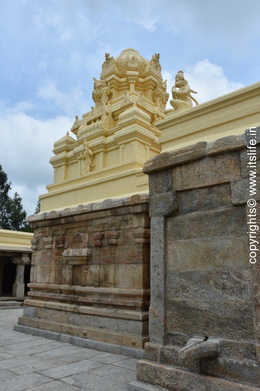 The Sanctum Sanctorum has a small tower, which is in typical Mysore temple architecture style.