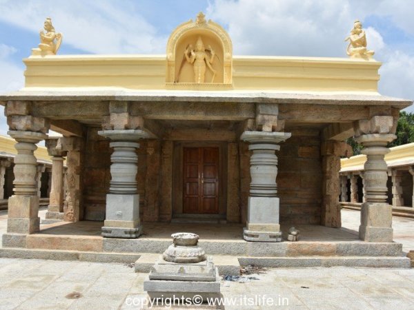 The Sanctum Sanctorum has a small tower, which is in typical Mysore temple architecture style.