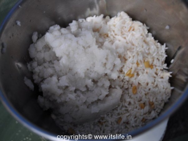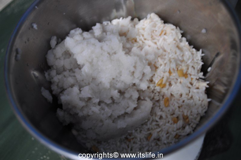 Wash and soak the Rice, Methi and Urad Dal for 4 hours. Soak Avalakki in water for 5 minutes before grinding. Grind all the ingredients together to a smooth batter.