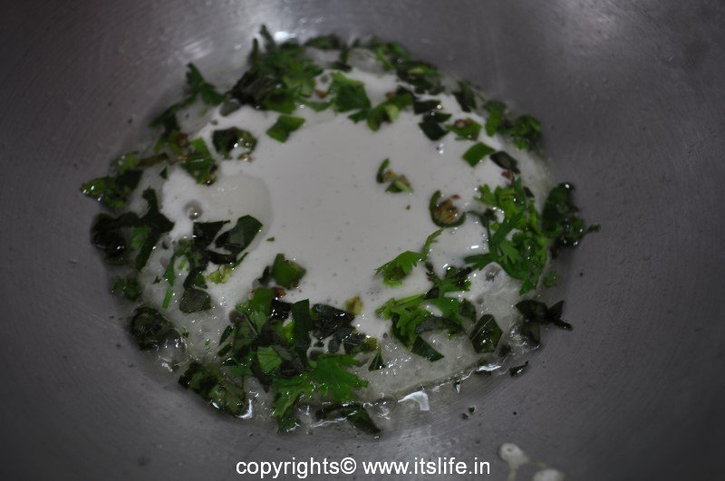 Sprinkle the Coriander, Curry leaves and Chilies over it.