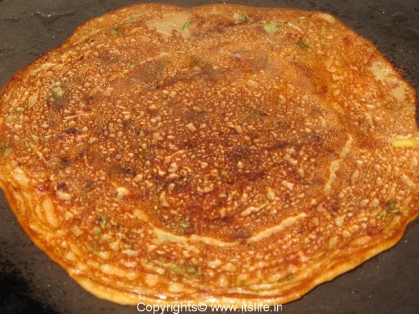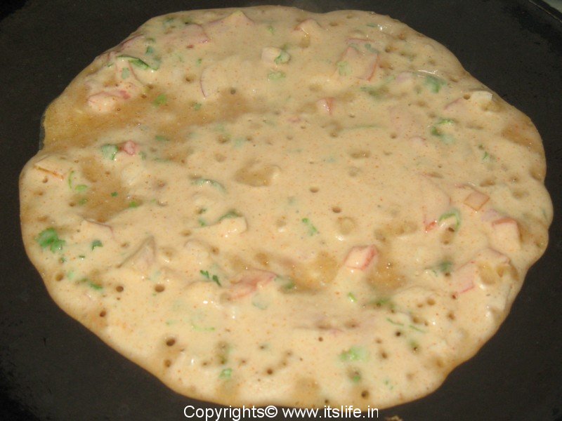 Mix all the other ingredients except for oil. Heat a griddle and pour a ladle full of batter on it and spread in a concentric circle. Add Oil and roast.