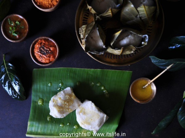 When Idli or Dosa batter is in the refrigerator there is absolutely no worry over fixing a breakfast. This is the mantra in all South Indian households. To break the boredom of this healthy breakfast, many varieties of Idli and Dosa are prepared. One such is steaming Idlis in various organic containers like Jackfruit leaves, Teak leaves, or Turmeric leaves. This variety of Idli is steamed in Jackfruit leaves containers known as Kotte.