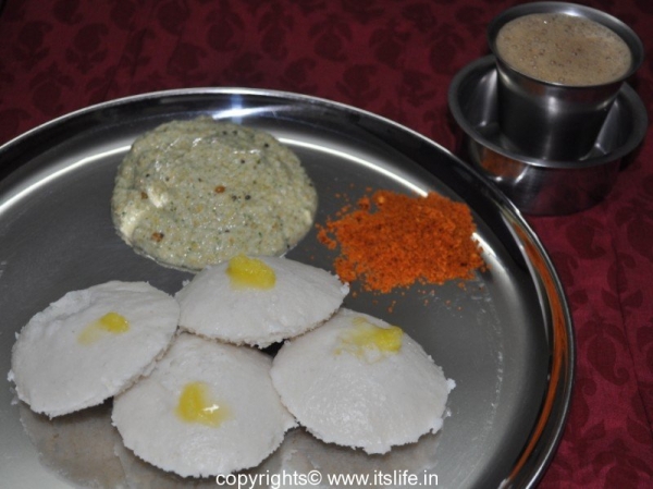 Remove from molds. Serve hot with Coconut Chutney and Sambar.