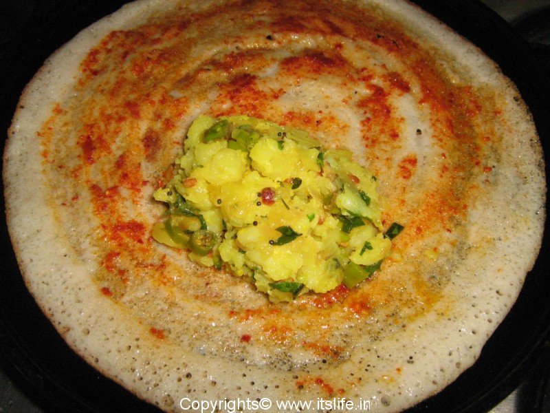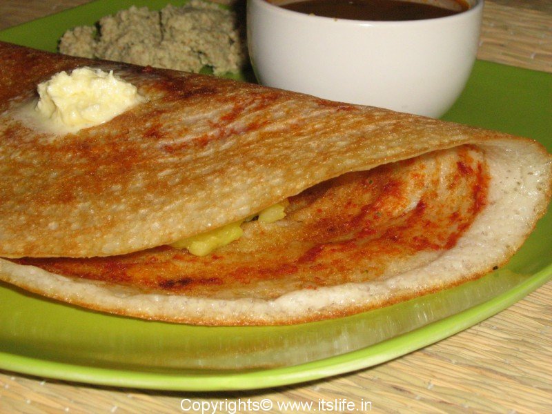 Fold the Dosa over it and serve hot with Chutney and Sambhar.