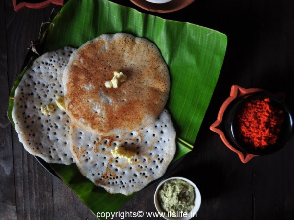 The crepes/pancakes are served in sets. Earlier a Mysore Set Dosa consisted of 4 Dosas, now it is 3 Dosas in a set. It is a filling breakfast served with Chutney and Sagu or Kurma.