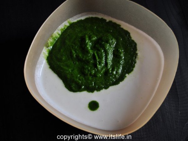 Soak Rice, Urad Dal, Methi, Tuvar Dal in water for 4 hours. Grind them together to a batter and leave it for 8 hours to ferment. Clean and wash Palak and Coriander leaves.