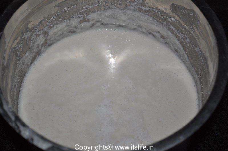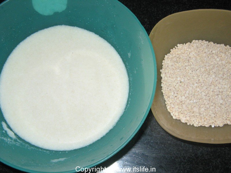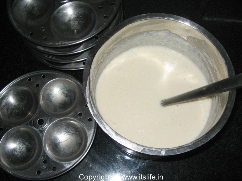 Add Idli Rava to the batter and mix well. Add water if required. Keep it aside for 6 to 7 hours.