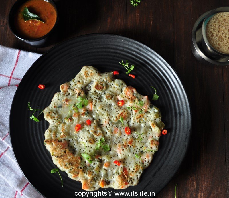 Nutritious vegetable dosa that can be served with no accompaniments!