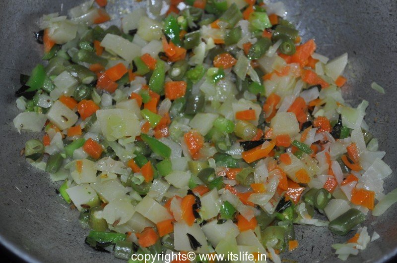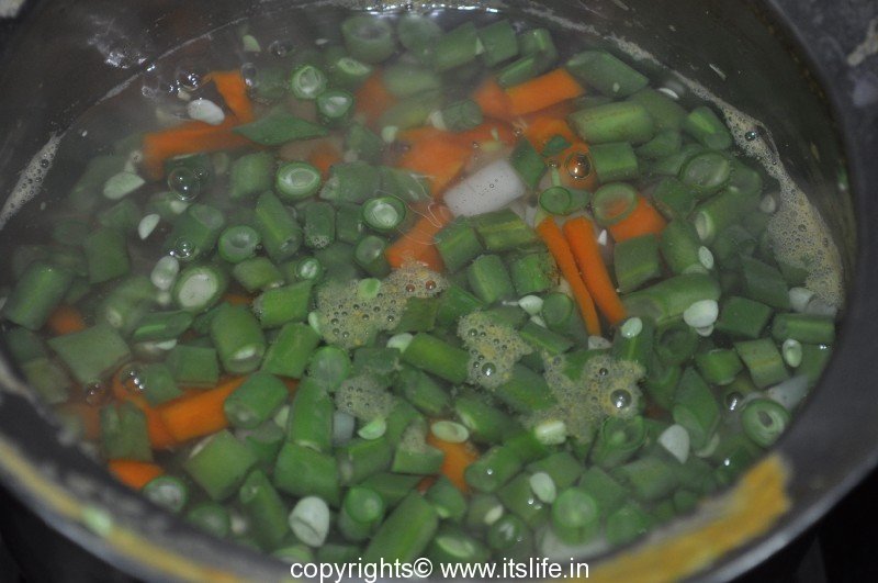 Add the boiled Vegetables and stir. Add ¼ tsp Salt and mix.