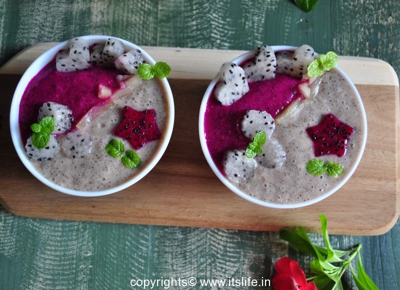 How about some splash of color and health in your eating bowl!? Dual Color Dragon Fruit Smoothie Bowl is both attractive and healthy.