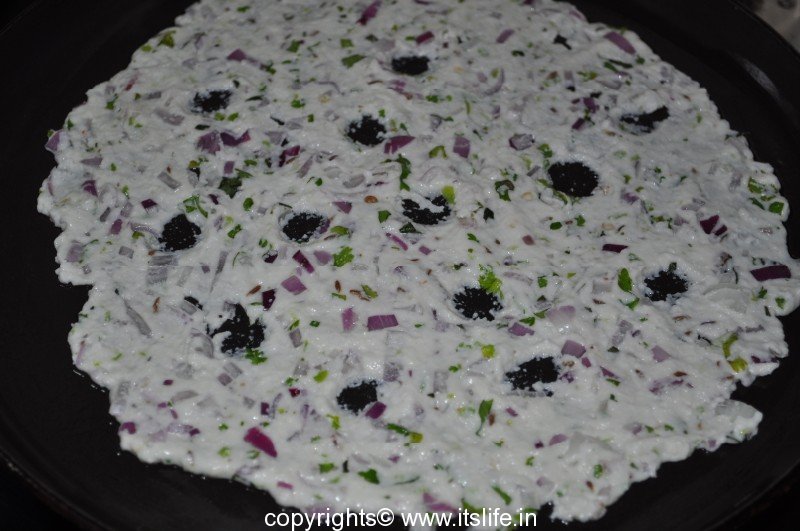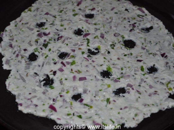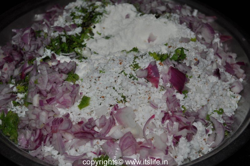 Mix Rice Flour, Coconut, Green Chilies, Coriander Leaves, Onions, Jeera, Salt, Curds, and required amount of water to a soft dough.