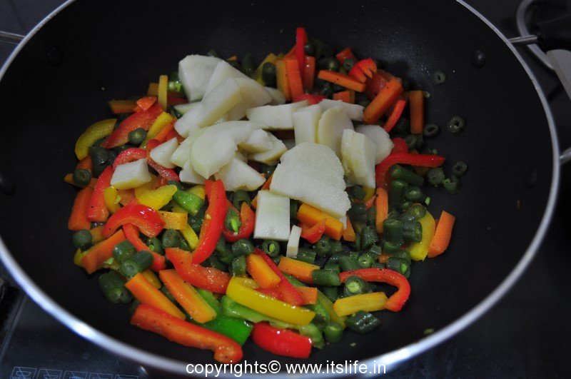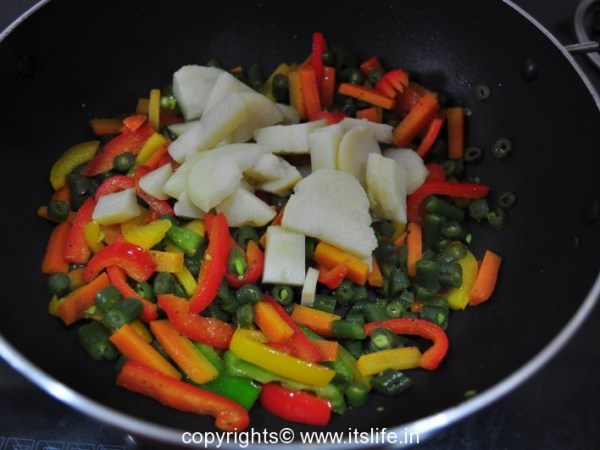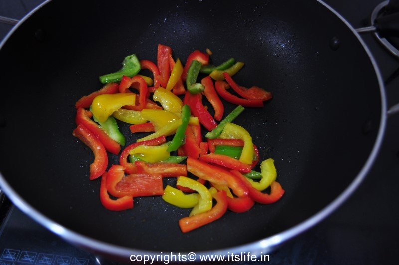 Heat butter in a pan, add capsicum and sauté for a minute.