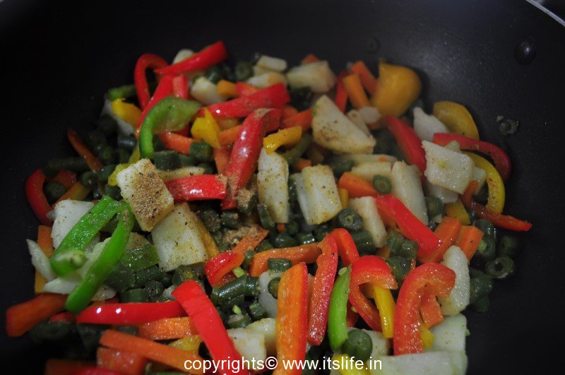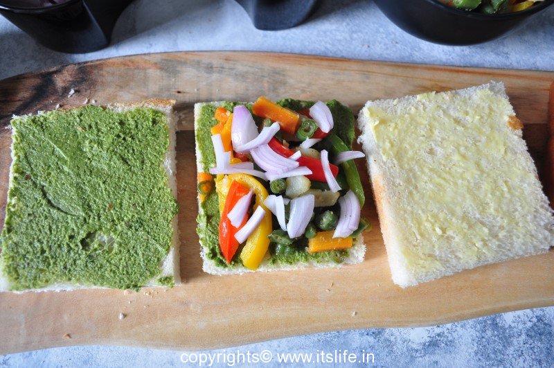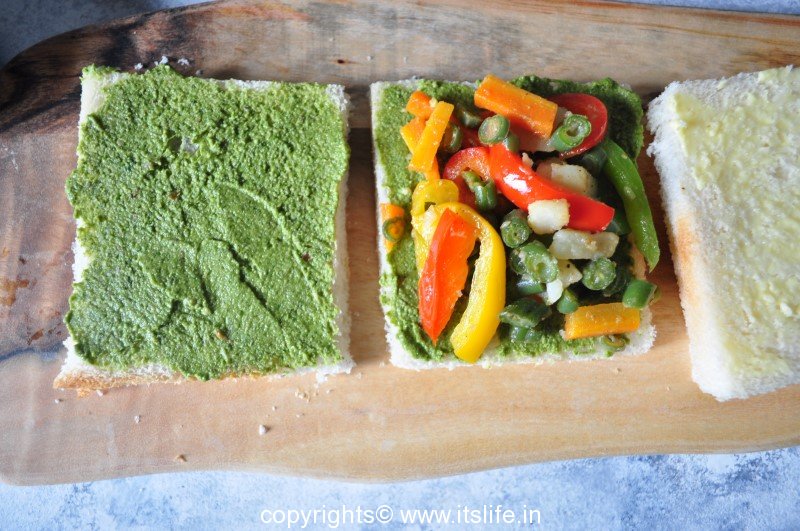 Add Sandwich masala and Salt. Toss. Remove from heat and keep aside.