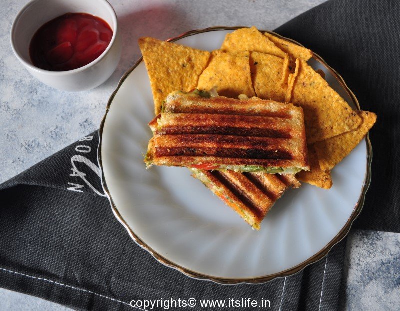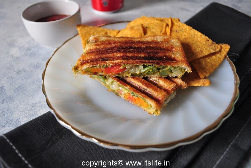 Enjoy hot Mumbai sandwich with your choice of sauce and drink.