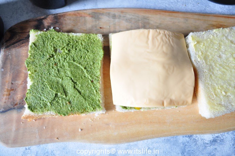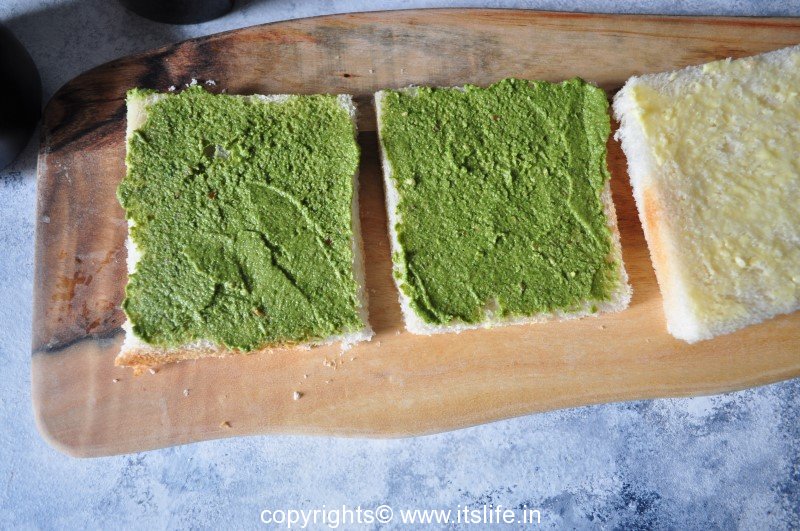 On the unbuttered sides spread the chutney.