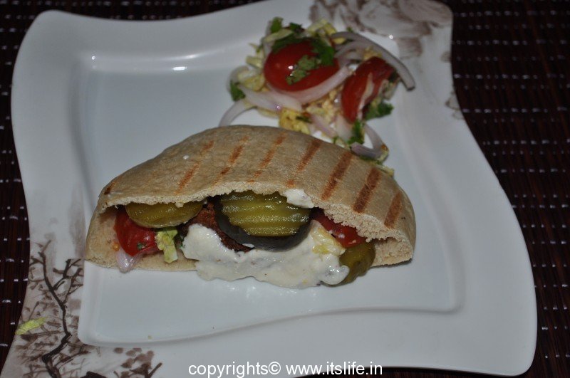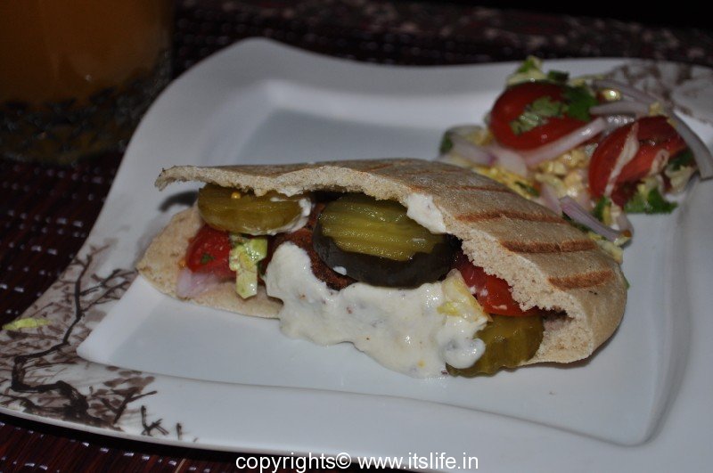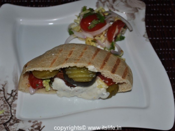 Falafel Sandwich is a Falafel Sandwich middle eastern favorite where chik pea fritters and vegetables are stuffed into a Pita bread.