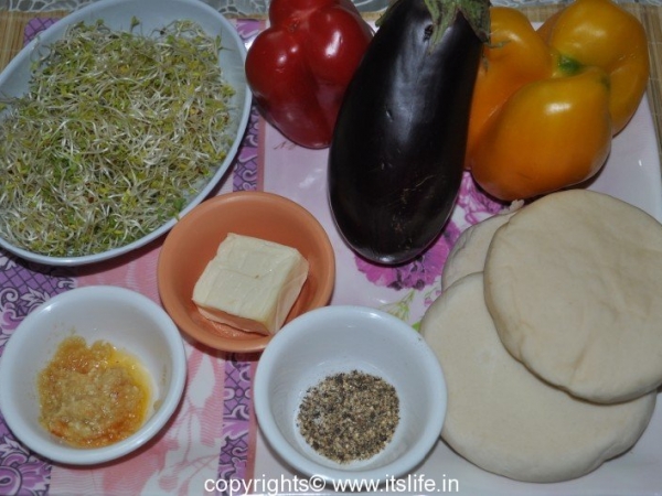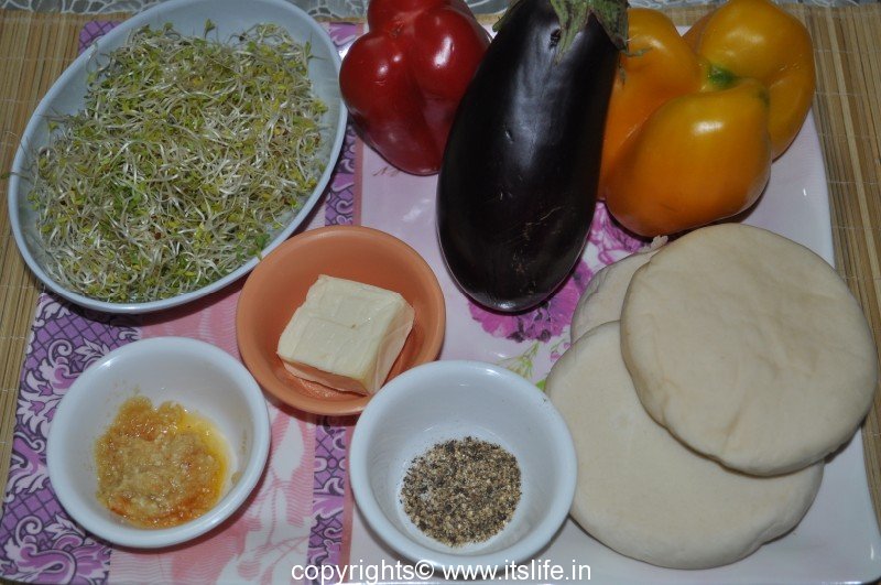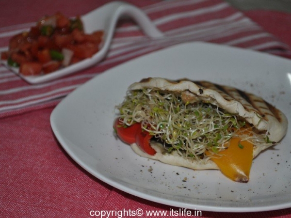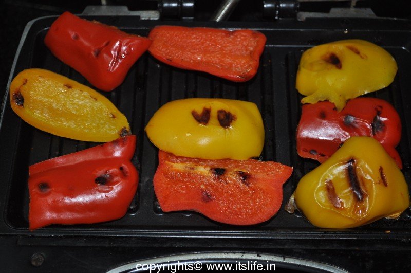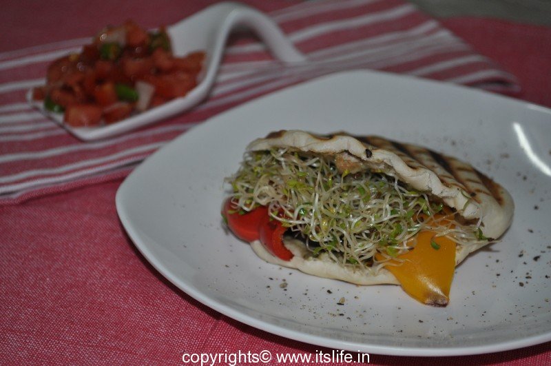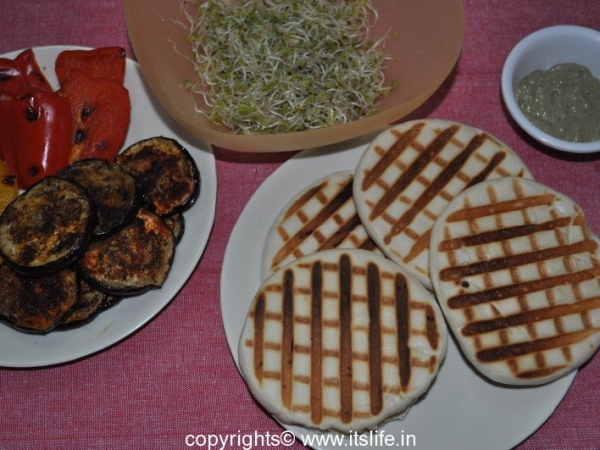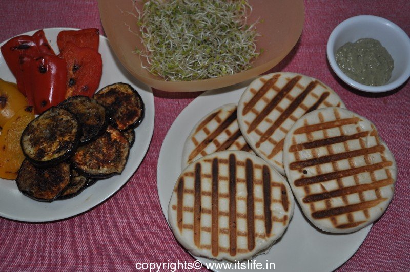 Toast on both sides and keep aside. Grill the Pita pockets.