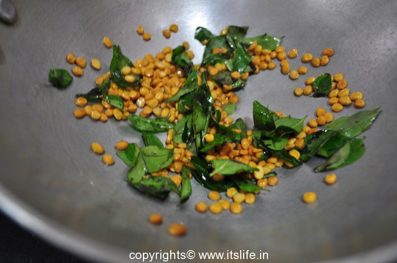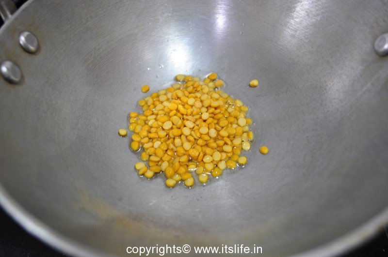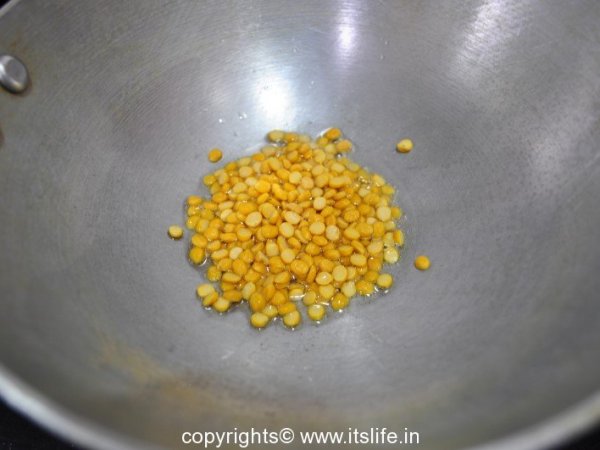 Heat 1 tsp of Oil and fry the Bengal Gram till they turn reddish brown.