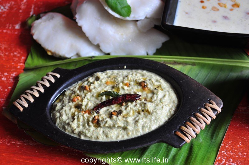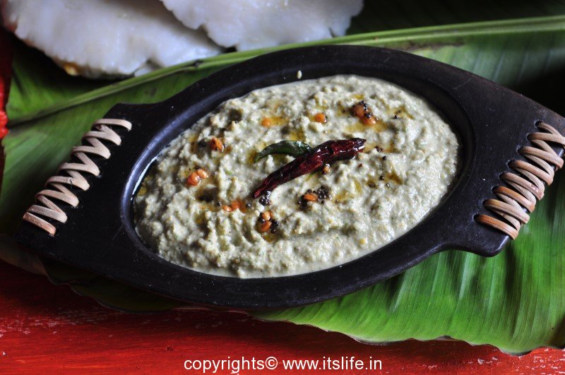 Bengal Gram and Coconut Chutney can be made spicy by adding more Green Chilies. This spicy chutney goes very well with Idli.