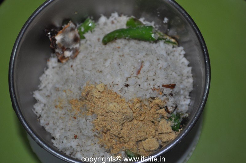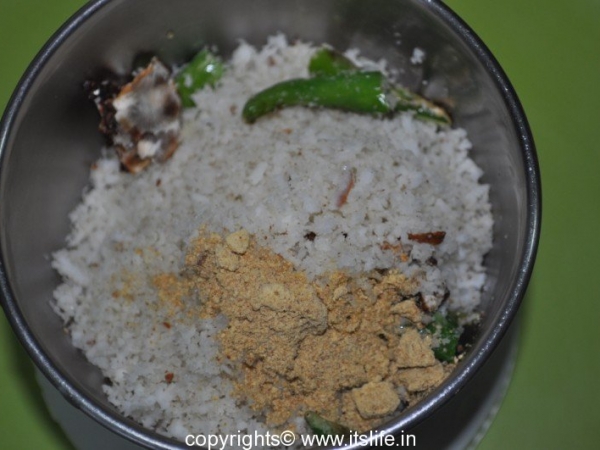 Fried Coconut Chutney – Hurida Kayi Chutney used to be served in its humble position next to the Salt everyday in Kurtakoti. A must-have during lunch time, it would have a tangy and spicy taste, which would go very well with Jower Roti.
