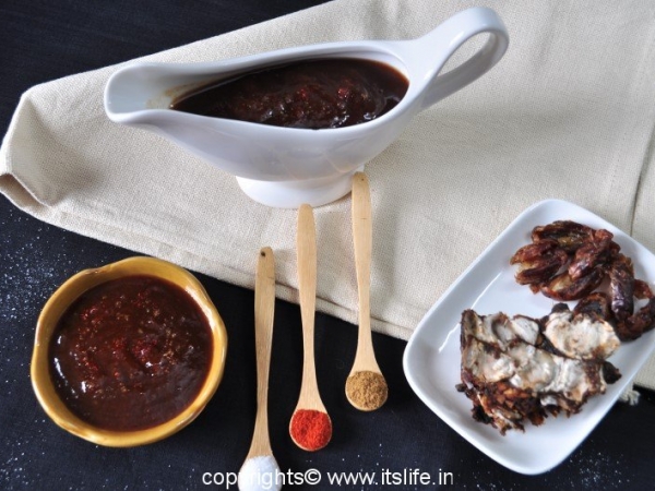 Sweet Chutney is prepared using Tamarind and Dates. This is a tangy and sweet chutney used in preparation of Chaats.