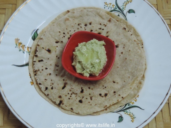 Serve Yellu Hasimenasinakayi Chutney with Chapathi or Roti.