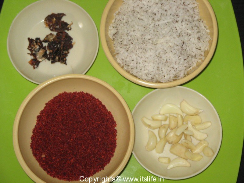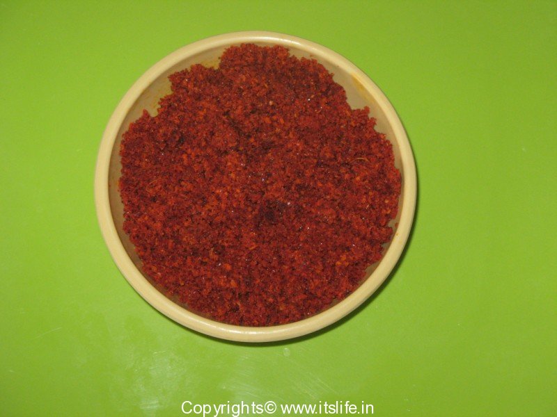 Coconut Garlic Chutney Powder is prepared in North Karnataka and Maharashtra and is served with Bhakri or Chapathi.