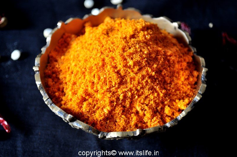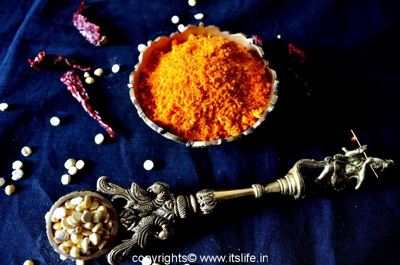 Hurigadale Chutney Pudi is a chutney powder prepared using fried gram. This is usually served with most of the South Indian Breakfast dishes.