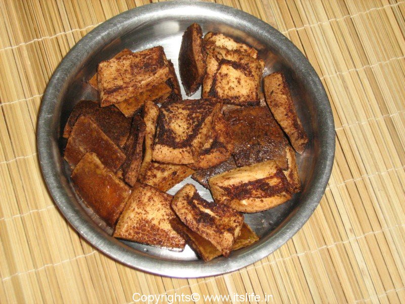 Heat Oil and deep fry the Balaka. The peels puff up and become brown and crisp. Serve with Anna – Saaru or Anna – Huli or Bisibelehulianna.