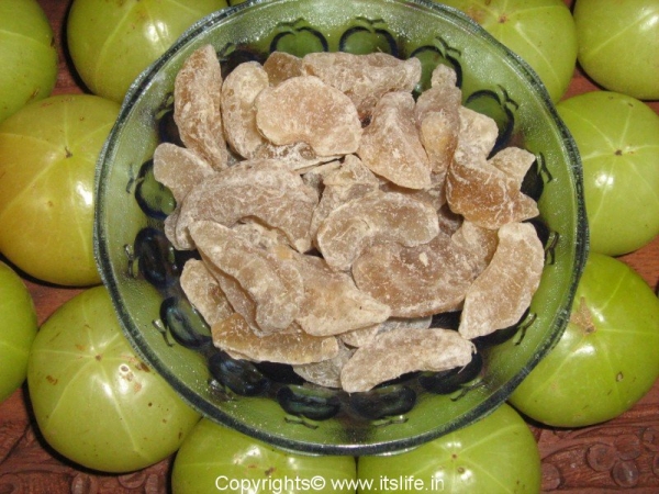 Indian Gooseberry slices are preserved in Sugar and Honey.