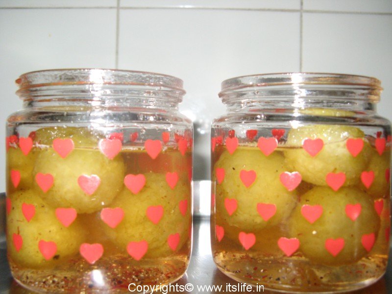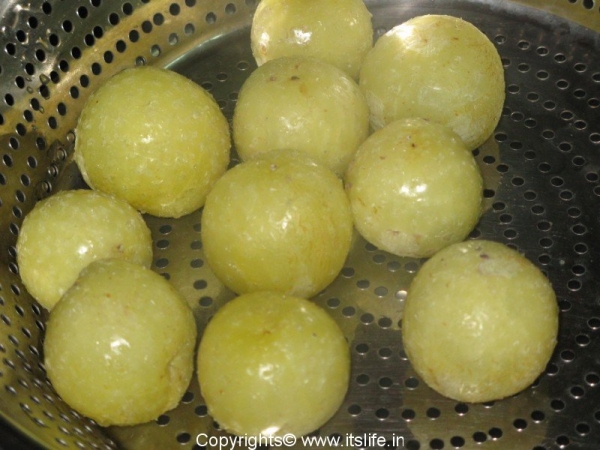 Bottles of whole Gooseberry jam would be lined up in kitchen shelf to last for a year and we would be given one Gooseberry daily in a cup along with some sugar syrup like a Jamoon. This jam used to be a favorite among kids and the jam would never last a year!