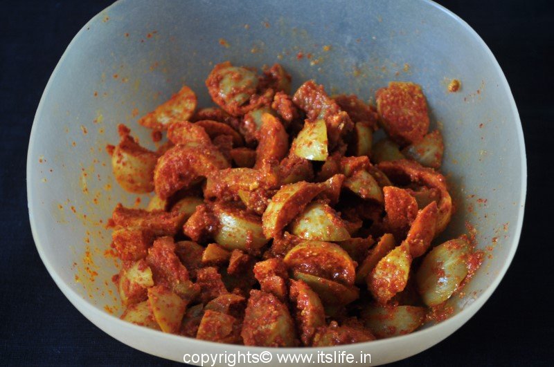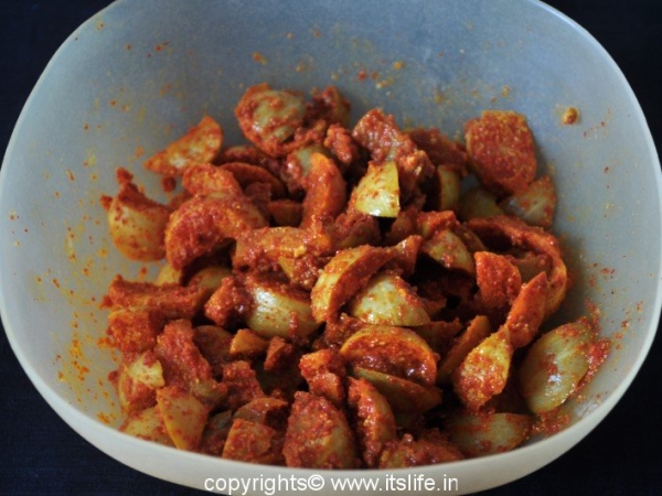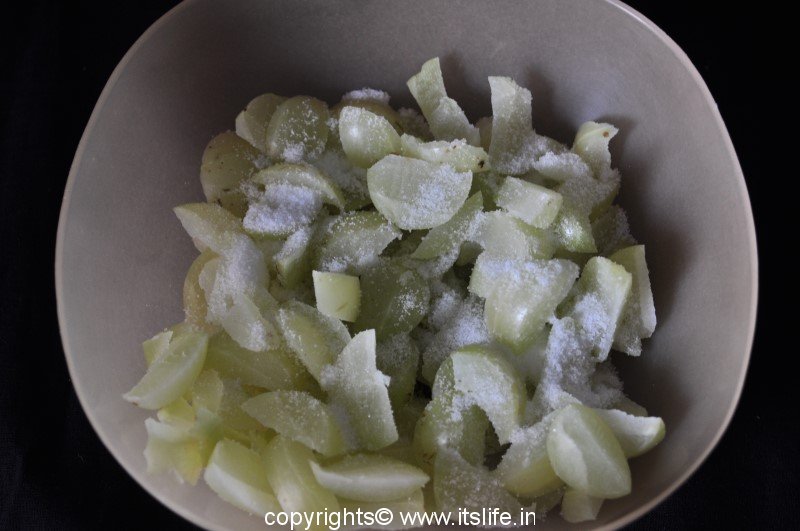 Mix Nellikayi with Salt and leave it aside for 2 to 3 days.