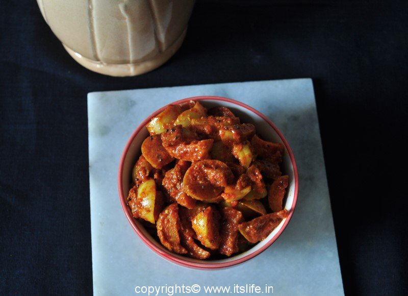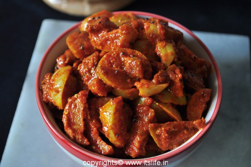 Bettadanellikayi Uppinakayi is a pickle prepared using Indian Gooseberry. Indian Gooseberries are available in the Winter just after Diwali festival. People pickle them during this time to last for the whole year.