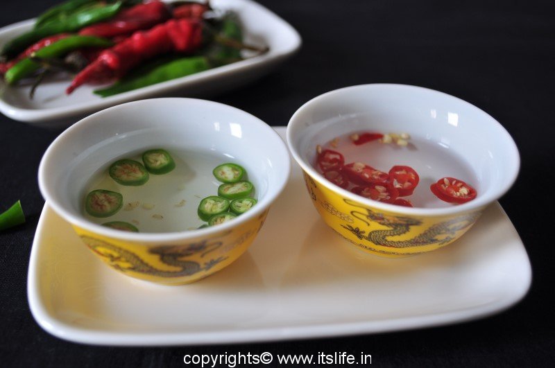 Chilies preserved in Vinegar. Chili Vinegar is a savior when it comes to adding some spice to a bland dish.