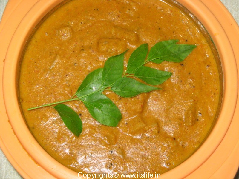 Baledindina Kootu is a curry prepared using Banana plant Stem.