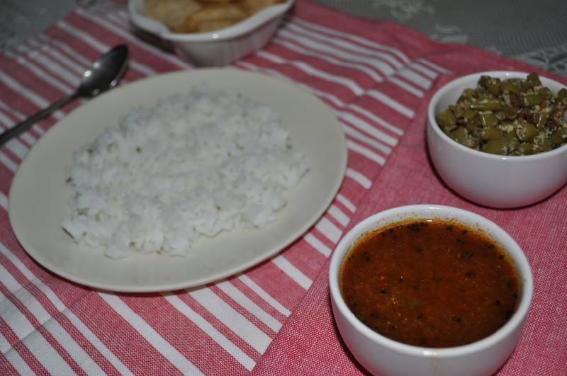 Hunase Saaru is a watery accompaniment served with plain Rice and is prepared using Tamarind.