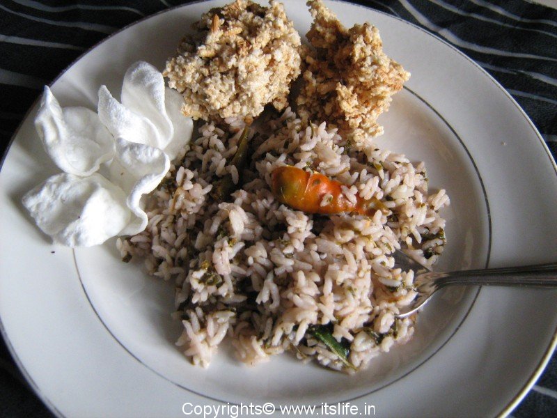 “Bolu” in kannada means nothing and “Huli” means curry or more popularly called as Sambar. As tuvar dal, Huli Pudi/Masala powder or fresh coconut is not added to this curry, it is known as “Bolu Huli”. This curry prepared using Red Amaranthus leaves is extremely delicious with Tamarind adding the dash of Huli/sourness to the dish and the aroma of Amaranthus leaves mixed with Green Chilies. This can be prepared using only lentils like Alsande/Cow peas, Whole Green Gram or can be prepared using mixed vegetables or combining lentils and leafy vegetables.