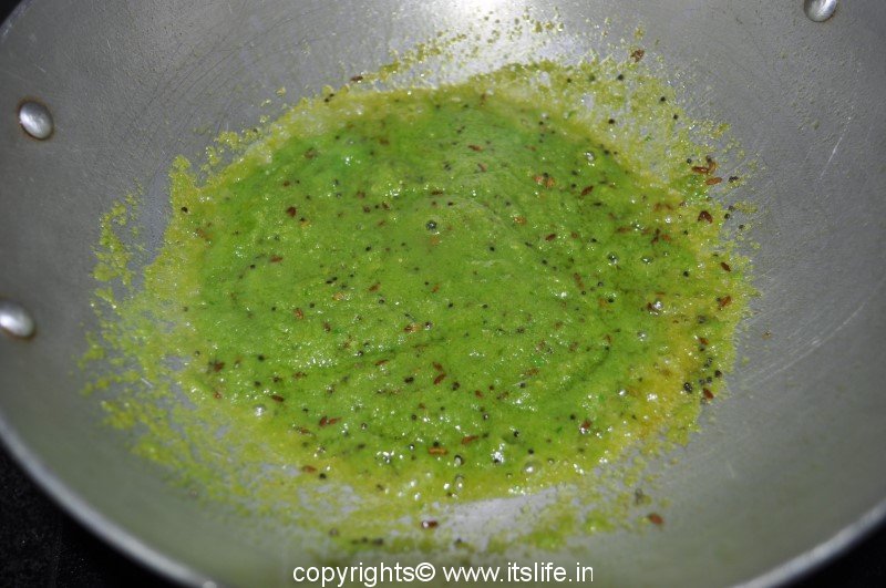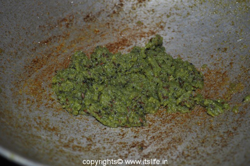Grind the ingredients for the masala to a paste. Cook Dal in the cooker and keep it aside. Heat Oil in a Kadai and add Mustard Seeds and when they splutter add Jeera and Turmeric Powder. Add the Masala paste.