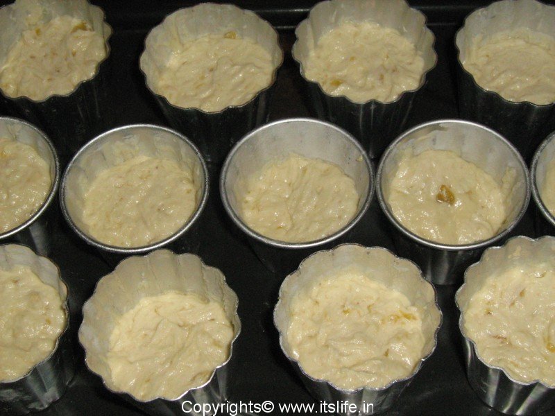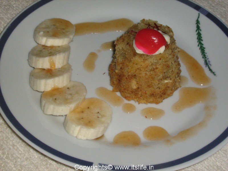 Let it cool, upturn the muffins and serve with slices of Banana.
