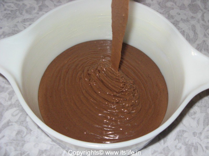 Sieve Cocoa Powder, Plain Flour, Baking Powder and Cooking Soda. In a mixing bowl mix Butter, Milk, Condensed Milk and add the mixed flour and fold in.