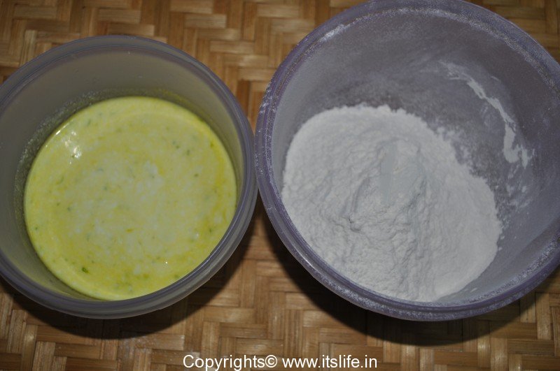 Sieve Maida, Baking Powder, and Cooking Soda together in a bowl (1) and keep it aside.