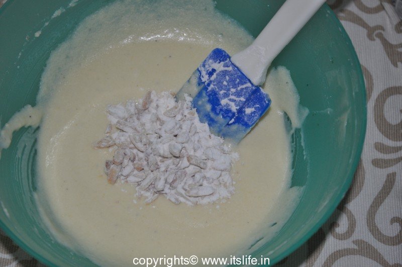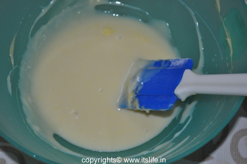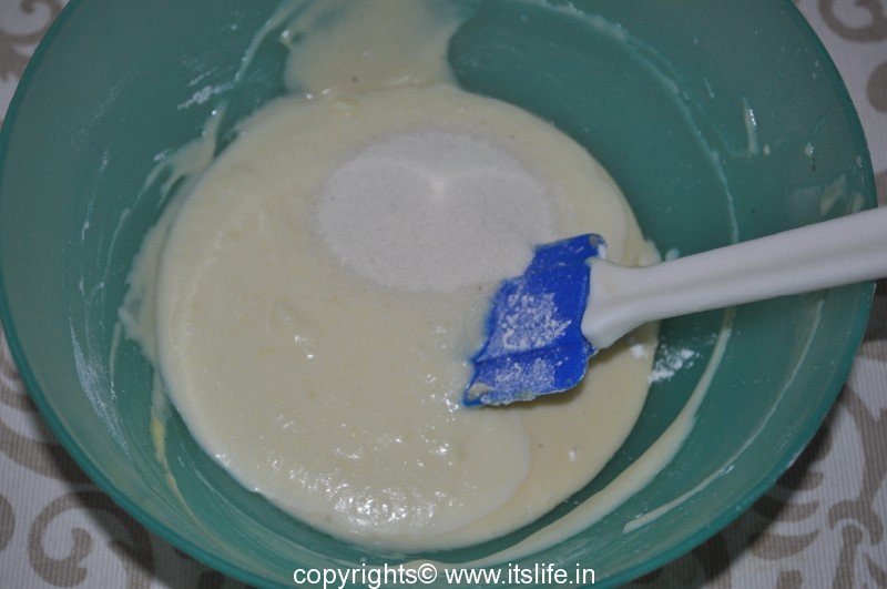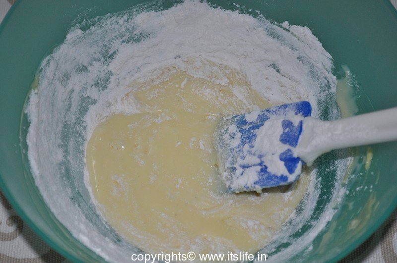 Add milk and maida mixture alternately to butter and beat without curdling.
