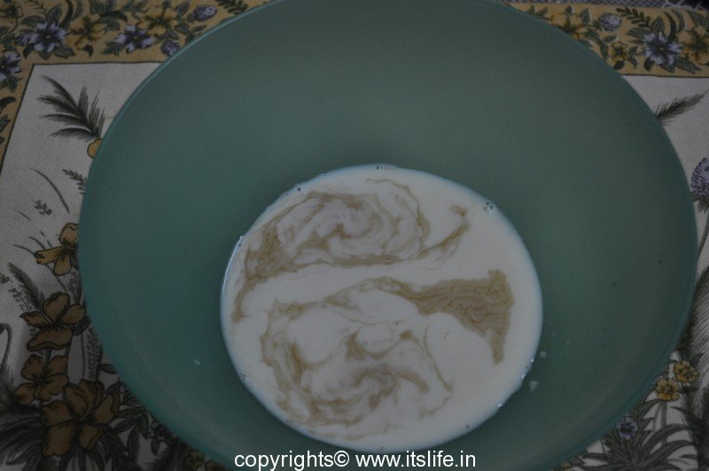 Mix Milk, Condensed Milk, and Vanilla Essence in a bowl.