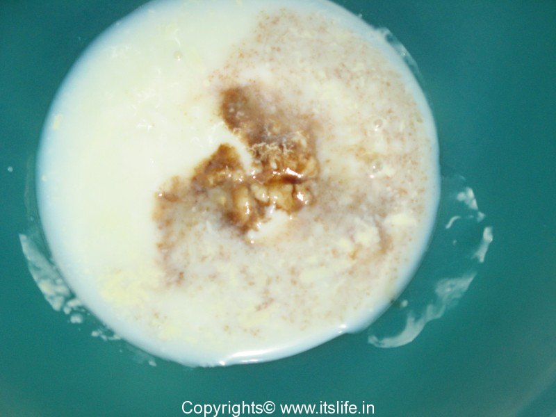 Mix milk, curd, vanilla essence and honey in a separate bowl.