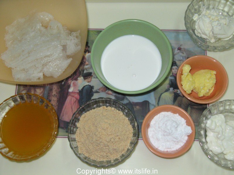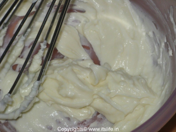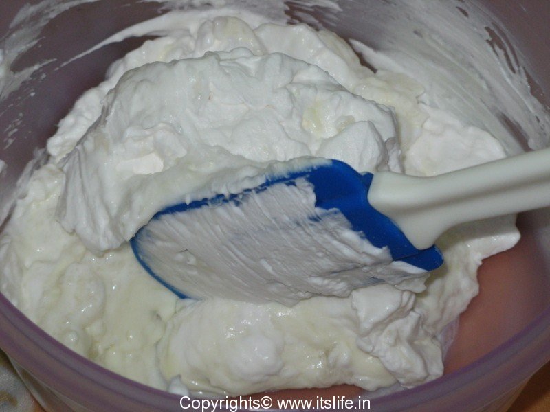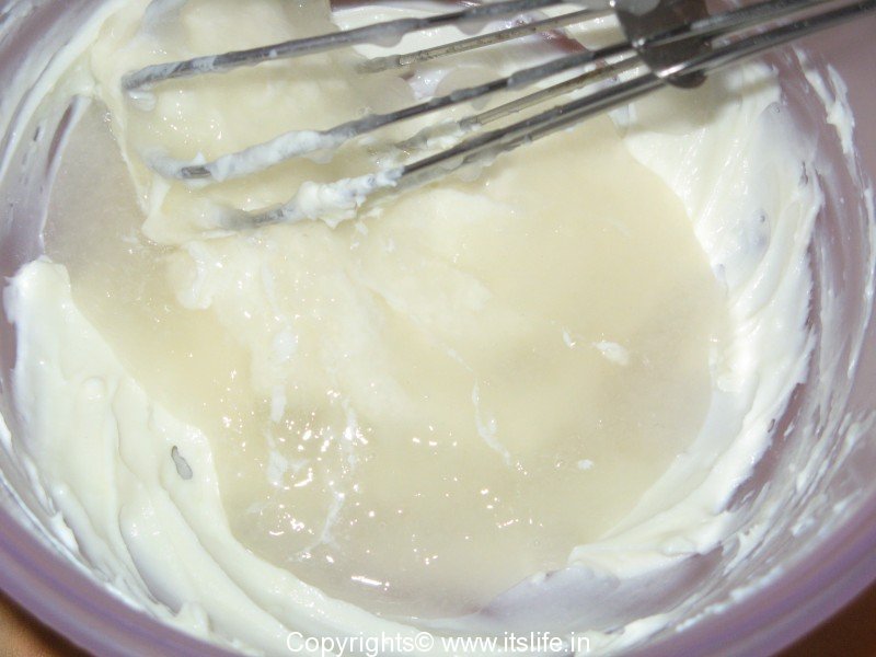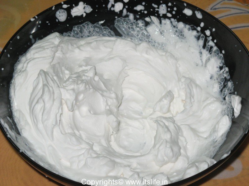 Soak China Grass / Agar Agar in half a cup of water and keep it aside. Whip the cream till it forms peaks