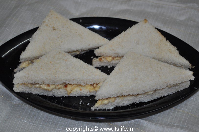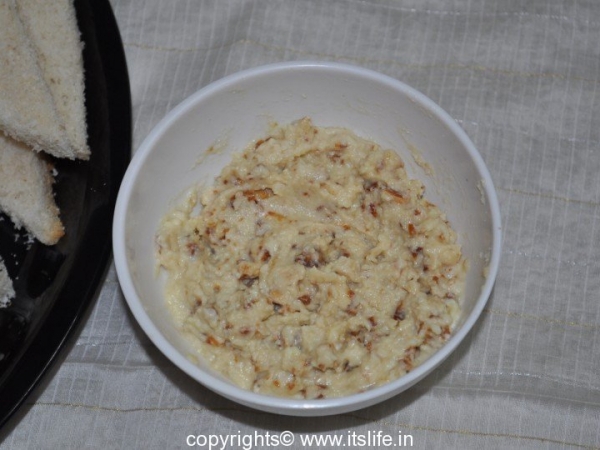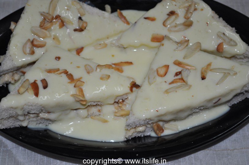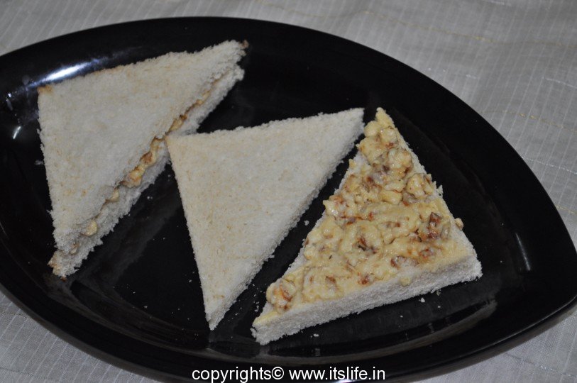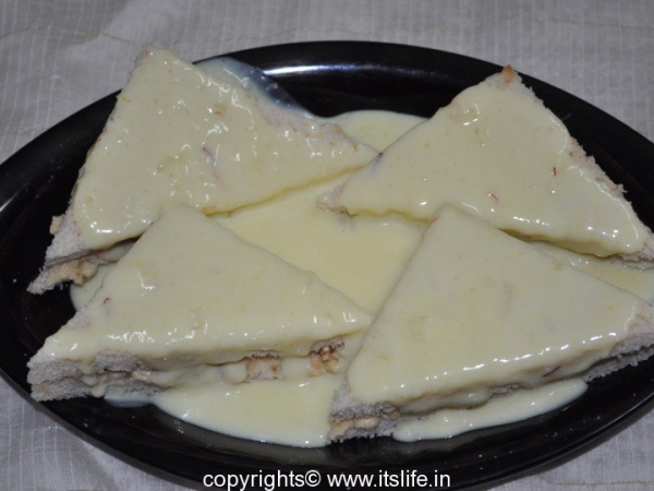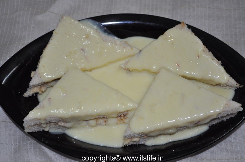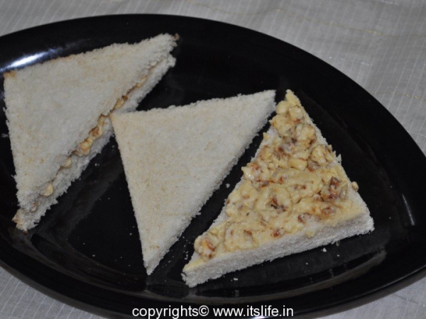Sandwich the Mawa mixture between the slice of bread.