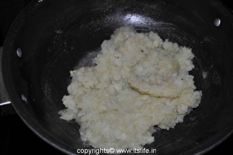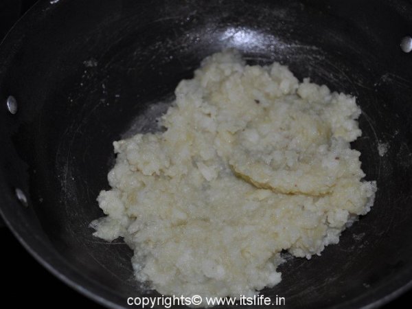 Boil Potatoes, Peal and Grate the Potatoes. Heat Ghee in a pan, add the Potatoes and mix well.