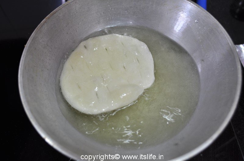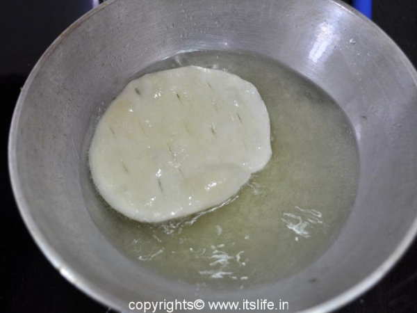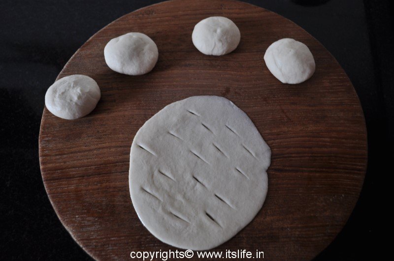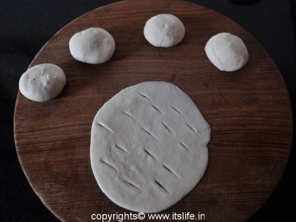 Divide the dough into small balls. Roll the balls as thin as possible and make few cuts on them.